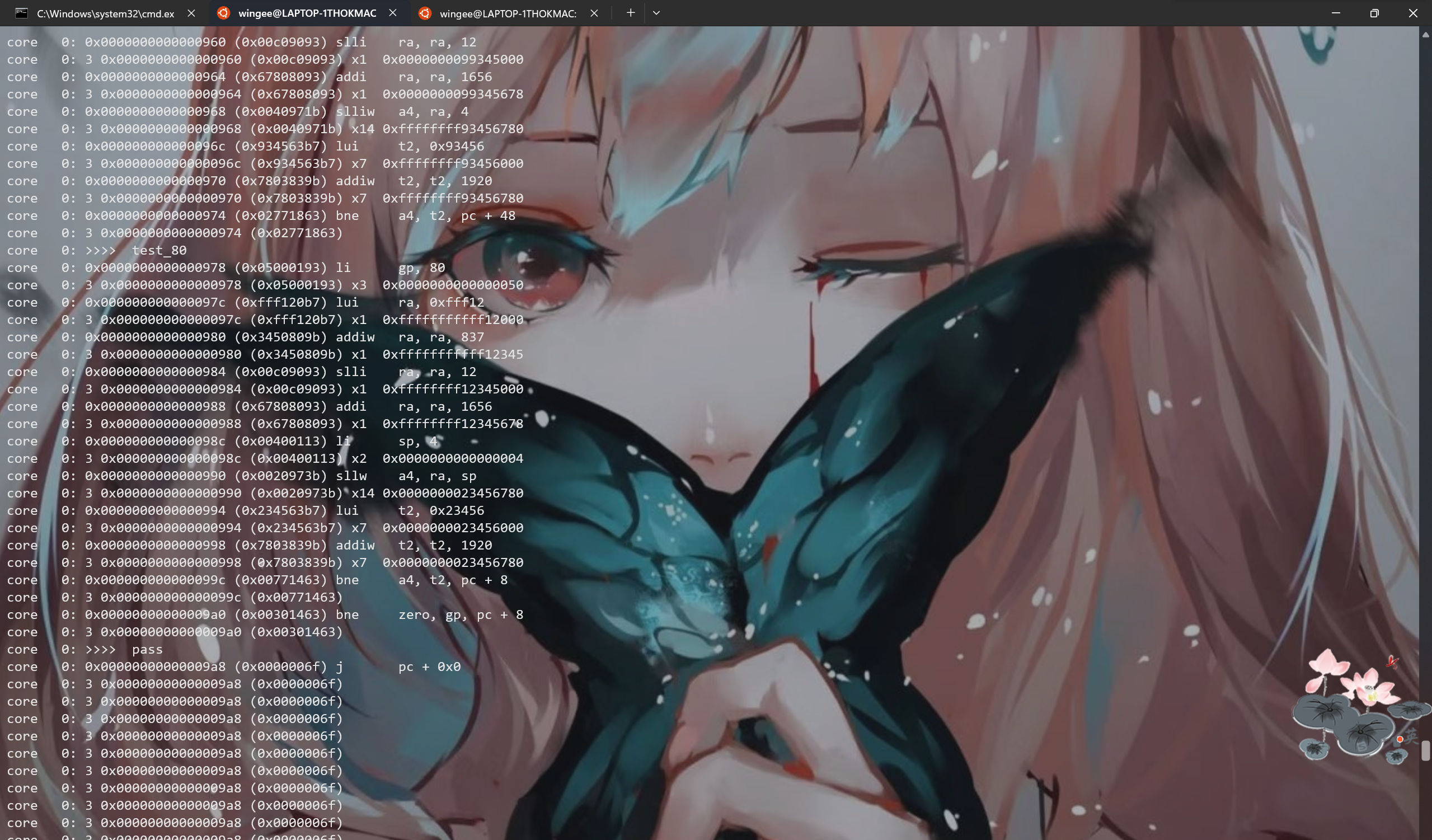 | bne ra, t2, pc + 1111 add ...... sub ......