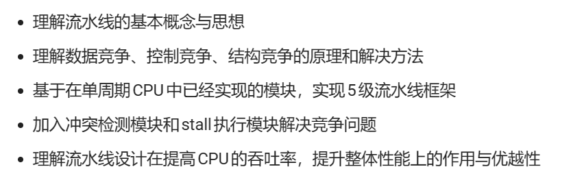 单周期CPU固然可以顺序,安全地执行指令,但不可否认的是会有大量时间的浪费。本实验将单周期CPU优化为基于stall的流水线CPU。通过IF,ID,EXE,MEM,WB,五个阶段分别完成对应的任务,并通过一些手段避免冲突,在安全执行指令的同时,大大提高CPU的运行效率。