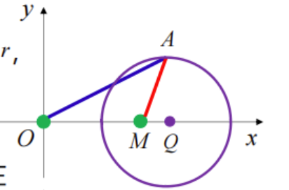 ,那么根据速度与路程的公式可以得到 ,即: 根据上式可以得出 的轨迹为圆 那么设A轨迹的圆心为 ,半径为 的圆C 下面我们尝试在直角坐标系中表示这个圆,因为圆心的位置是不确定的,这取决于 的大小。 根据 的正负,对其进行分类讨论 若