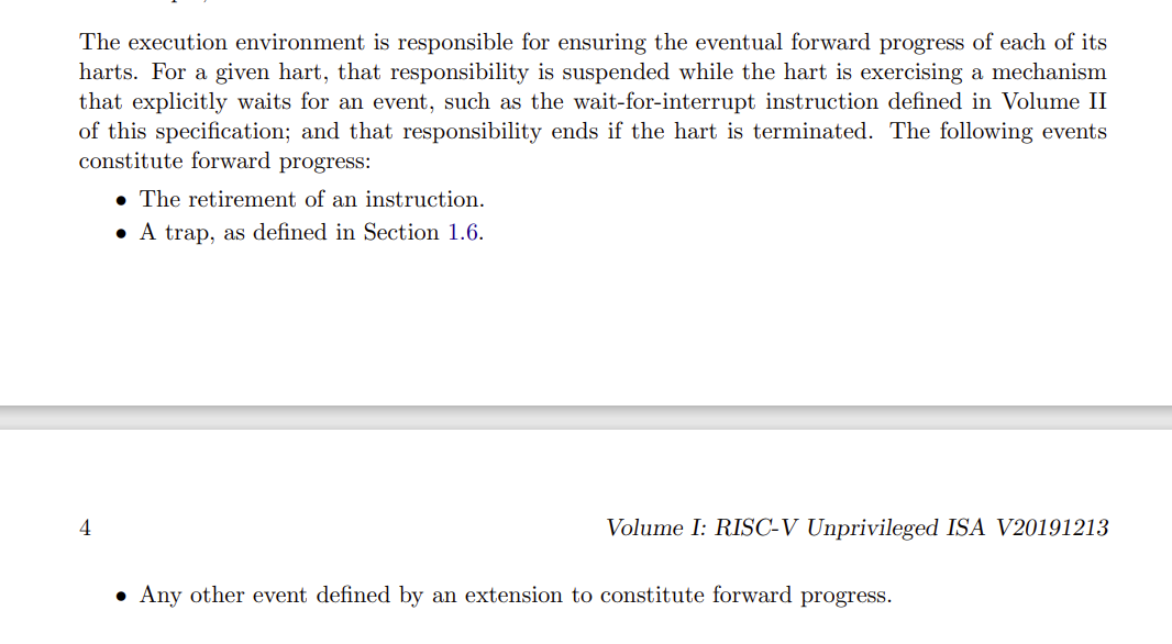 也就是说:如果我们使用了mul/div指令在不支持乘除法指令的处理器上,会在此处中断,进入到trap_handler中。此时非法指令的编码会被存储到 mtval。我们只需要在trap_handler中通过其他处理器支持的非特权指令模拟乘除法进行运算即可。