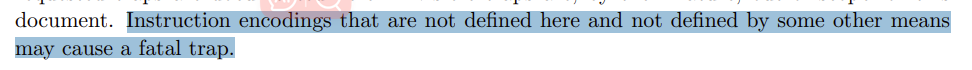 在指令手册中介绍说,如果我们使用了一个没有被定义编码的指令,那么会导致fatal trap。