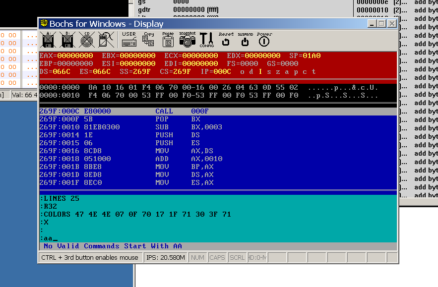 c命令可以把某部分机器码强行翻译成指令,纠错。