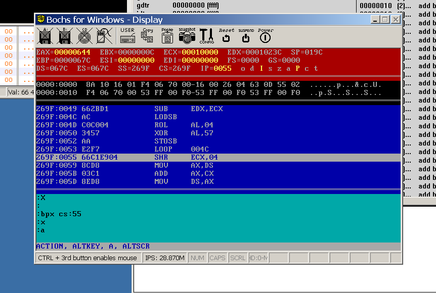 soft-ice比debug及turbo debugger更强大的最主要特性是其支持硬件断点: