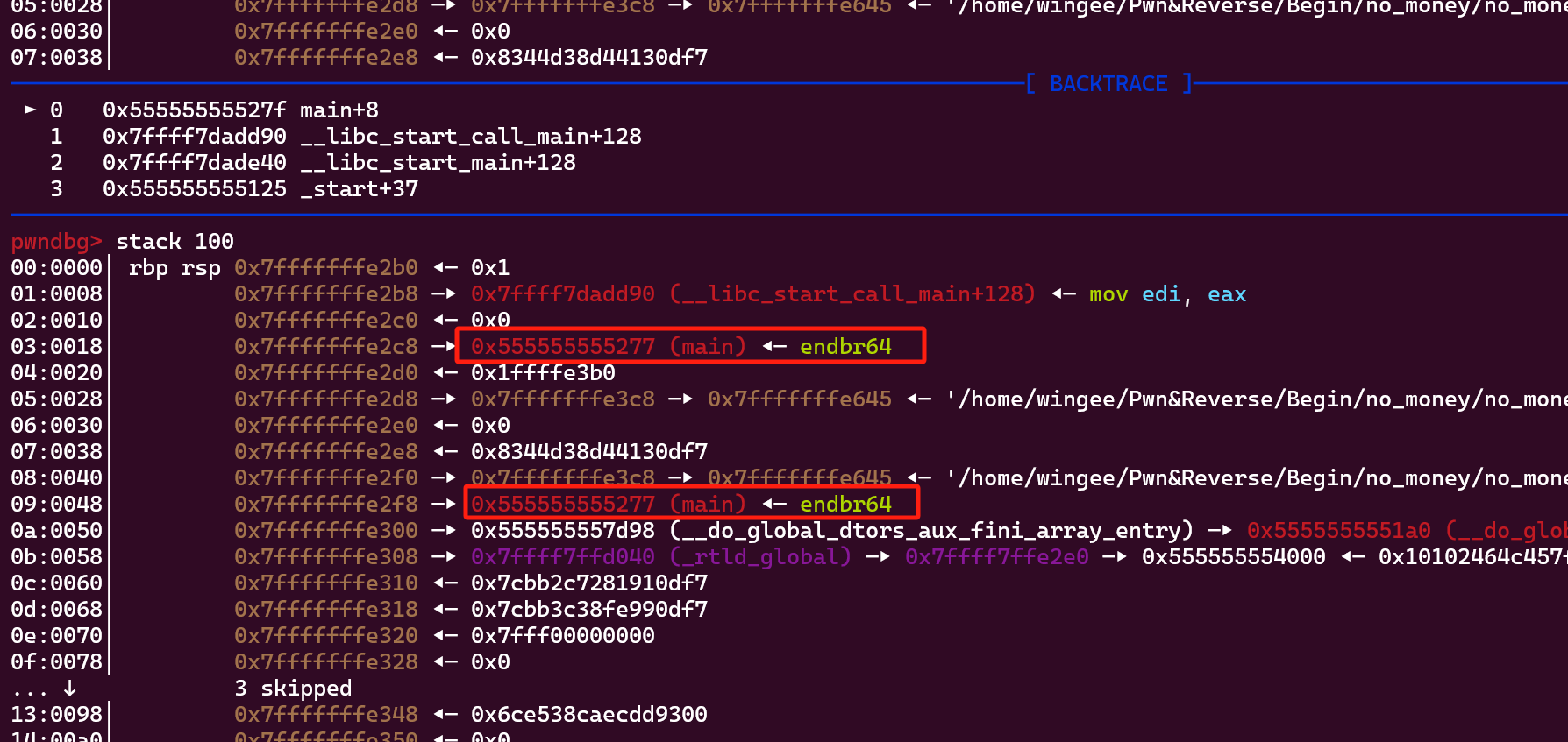 1 2 3 4 5 6 7 wingee@LAPTOP- 1 THOKMAC :~/Pwn&Reverse/Begin/no_money$ checksec no_money [*] '/home/wingee/Pwn&Reverse/Begin/no_money/no_money' Arch : amd64-64 -little RELRO : Full RELRO Stack : No canary found NX : NX enabled PIE : PIE enabled