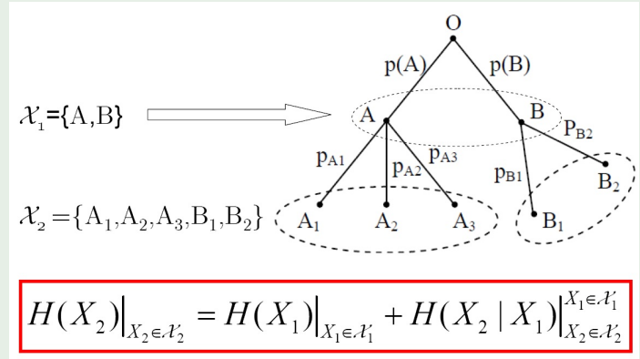 对变量X可以进行多步分层的观察,每一步都可从上一步的观察结果中得到更为细致的结果,变量X在最后的观察结果集合中的不确定性等于第一次观察结果的不确定性,加上其后每次观察结果在前一次观察结果已知的前提下的条件不确定性。