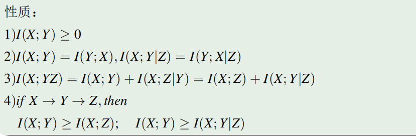 - 时间的自信息,条件自信息都大于0,而事件的互信息可小于,大于,等于0