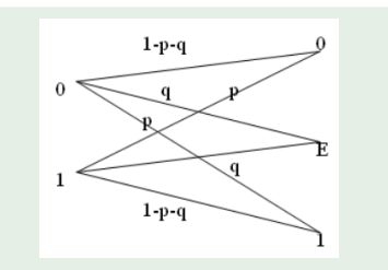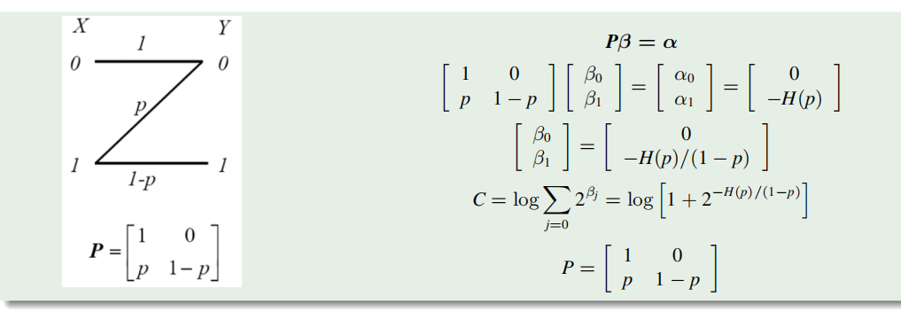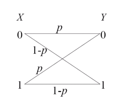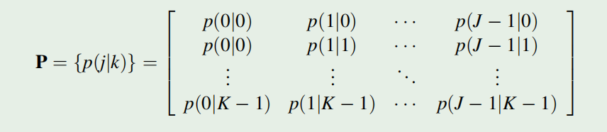 的每一列都是第一列的一个置换,则该信道关于输出对称 - 若一个信道既关于输出对称,又关于输出对称则该信道是对称的: