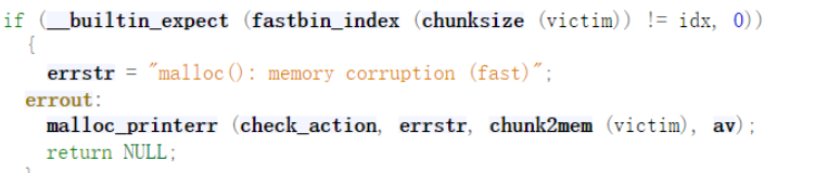 在从free fastbin从取出空闲块malloc的时候,会有如下比较