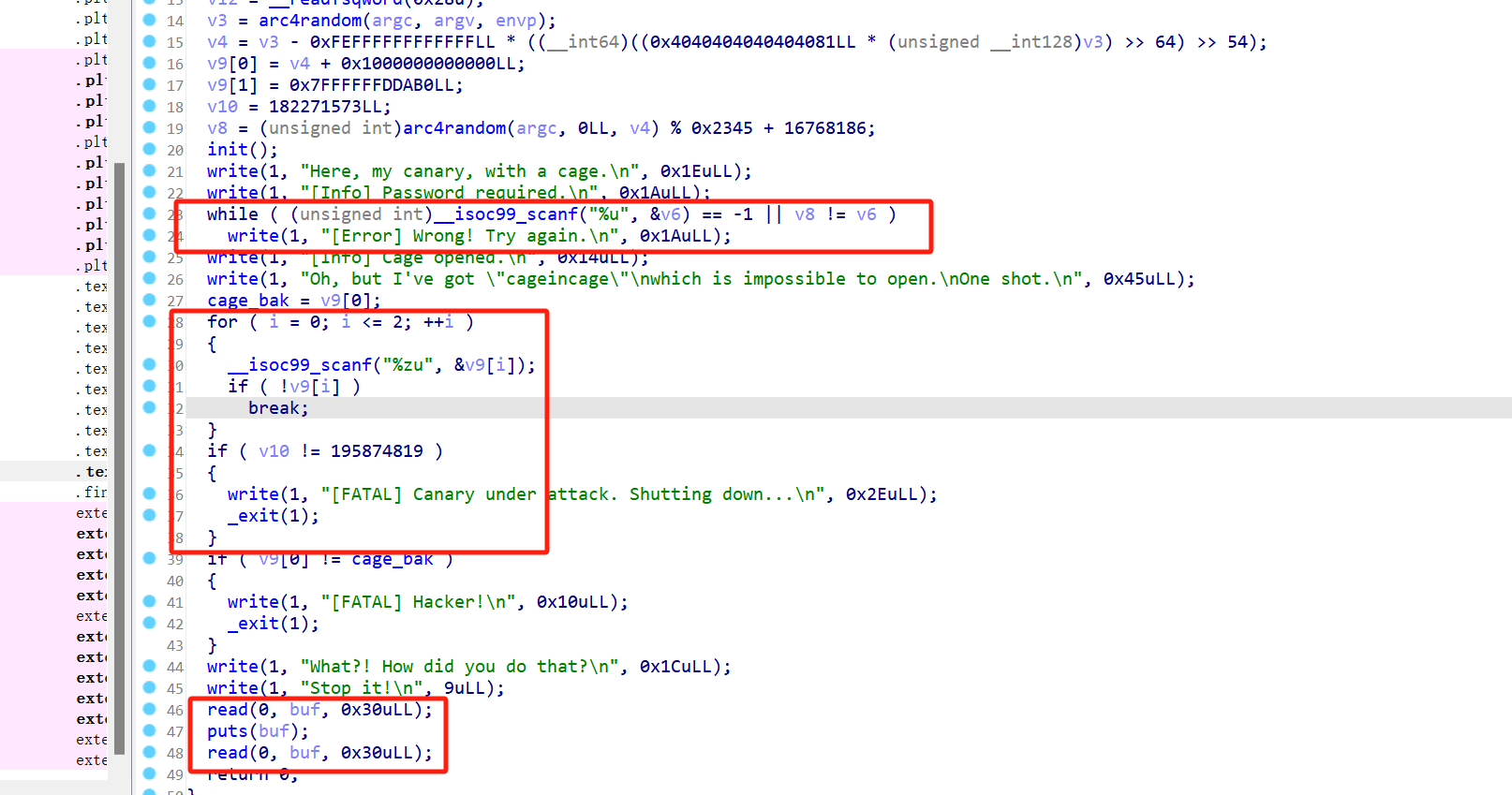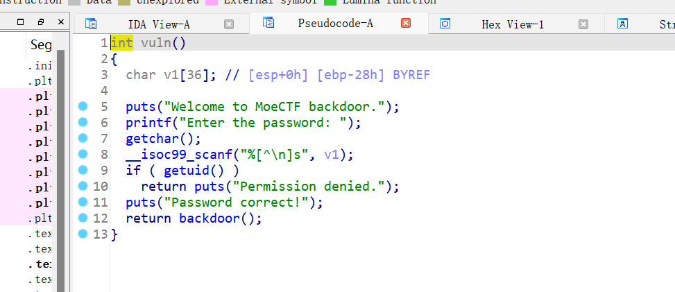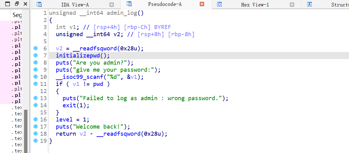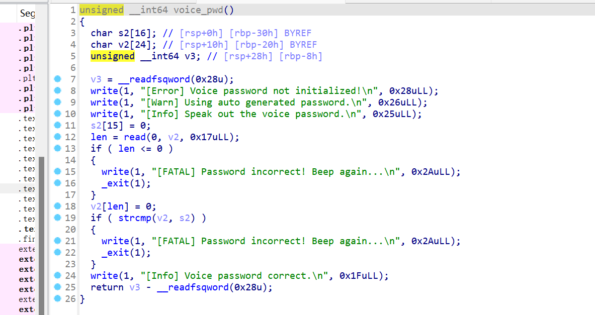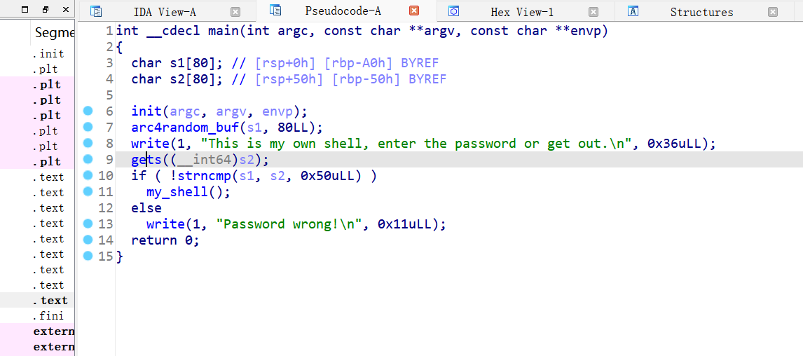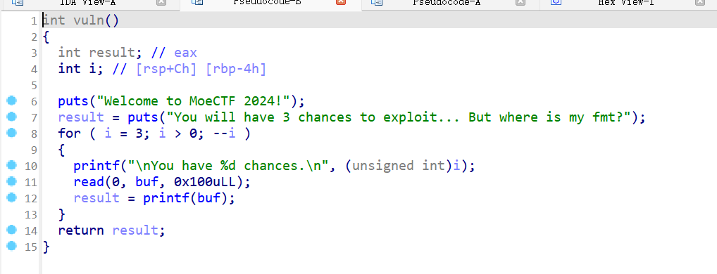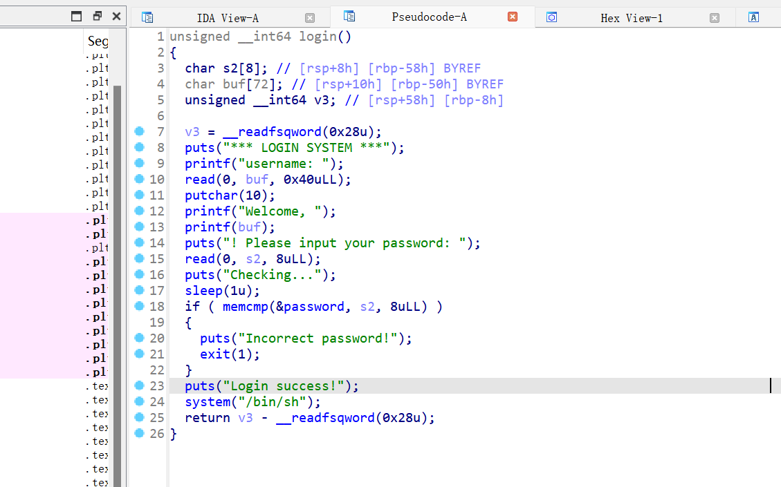 IDA查看,有一个fmt_str漏洞,可以利用它去泄露password。