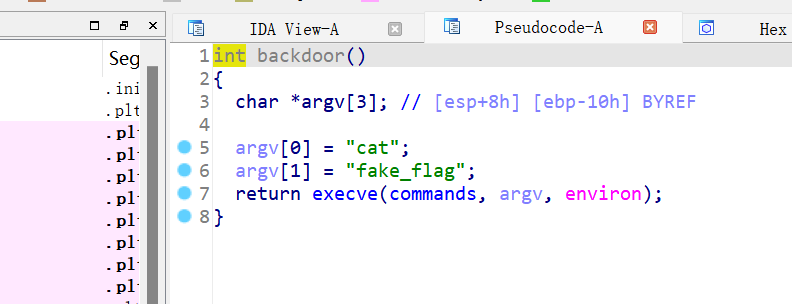 一个backdoor函数,给了execve,但是给的是错误的命令。