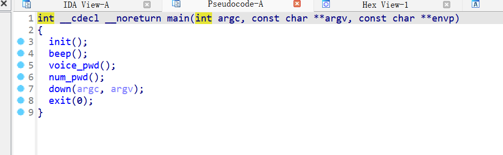 IDA查看程序,main函数里提供了几个方法