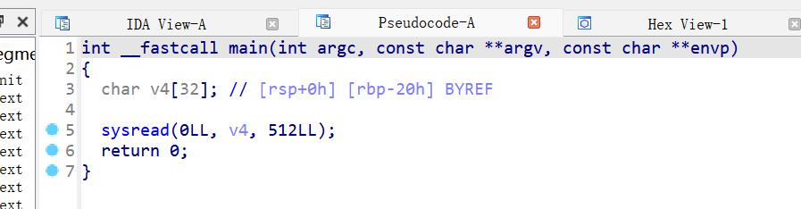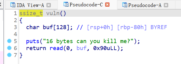 IDA查看,有一个vuln函数有一个溢出点