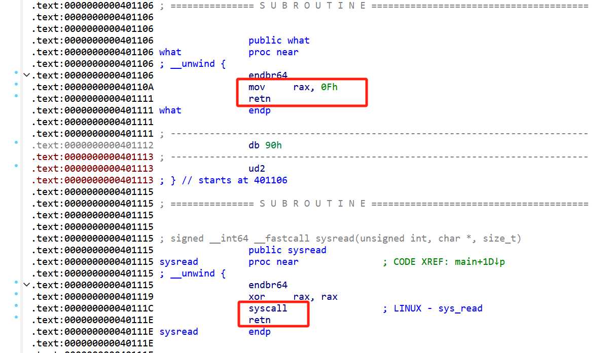 通过srop调整寄存器,用syscall来触发系统中断,getshell