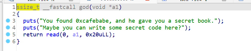 查看程序,程序中提供了一个后门函数帮助getshell