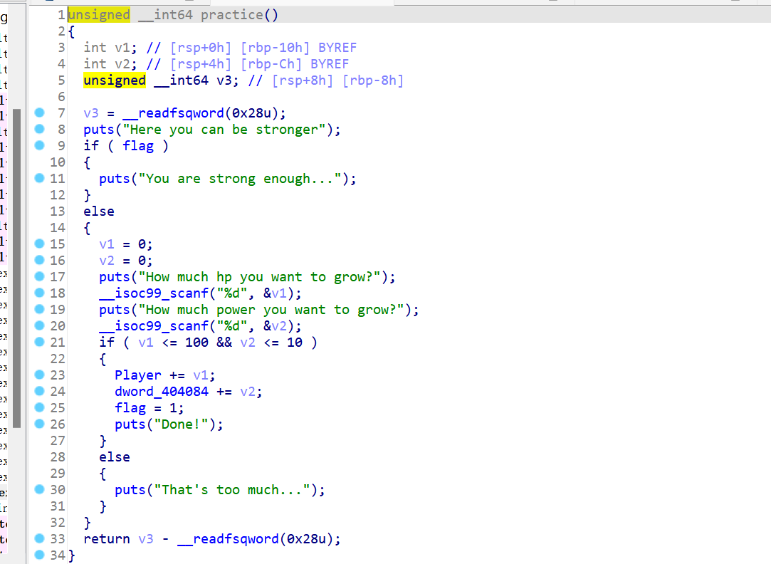 首先利用practice的负数溢出,去给生命值和攻击力叠满