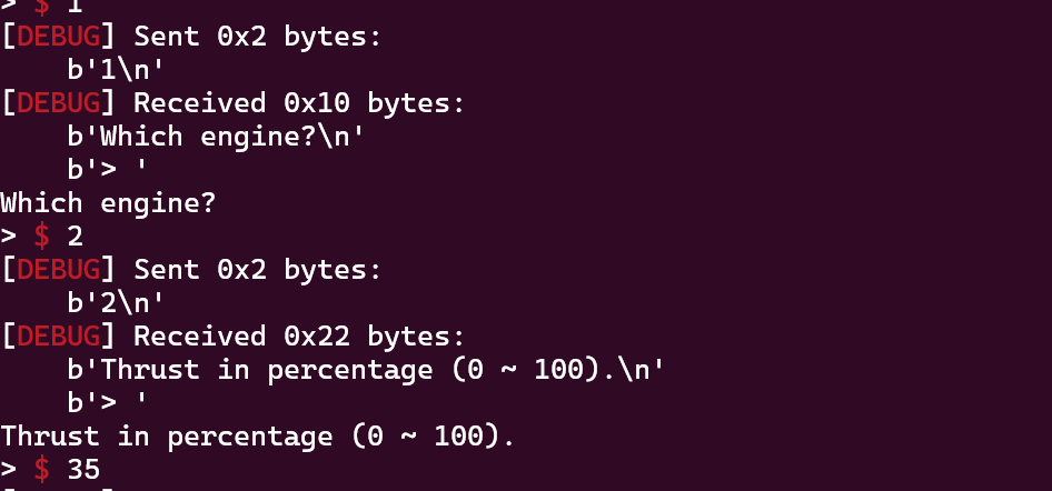 连接远程看看,好像背景是一个空难,然后有四个引擎。我们可以通过adjust去手动调引擎的动力,但是这些引擎会随着时间而逐渐崩溃。