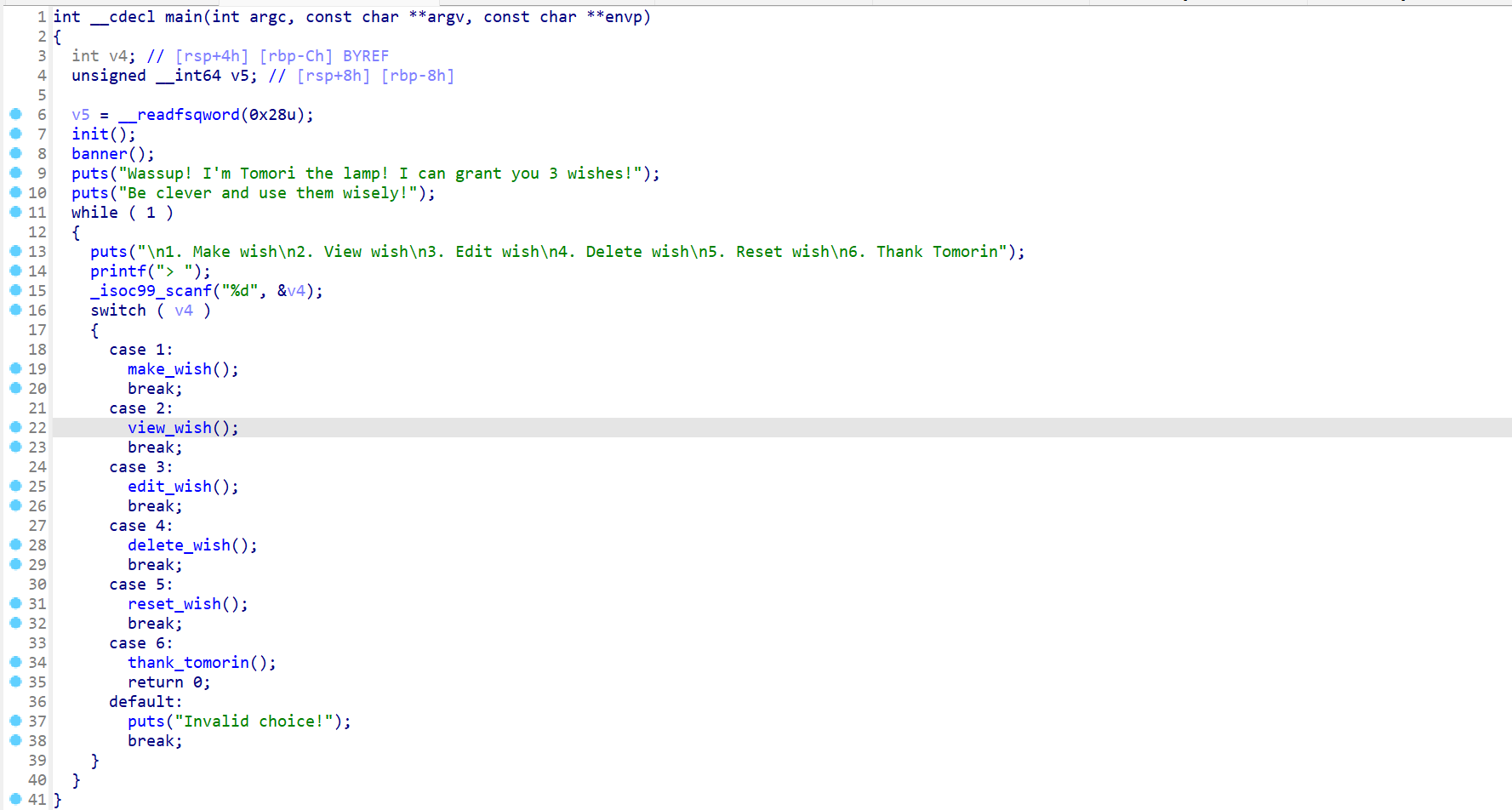 一开始想泄露canary,但是看了下view_wish, %s输出我泄露个蛋。