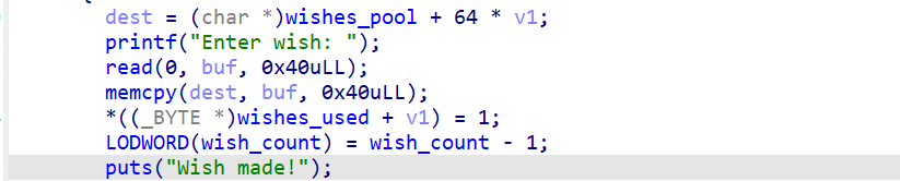 wish_count << 6表明了每个愿望的大小就是0x40字节。