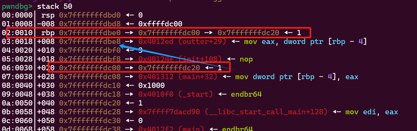 在面向以push rbp; mov rbp, rsp为基础,创建函数栈的程序中,栈上会有一些很长很长的栈指针链