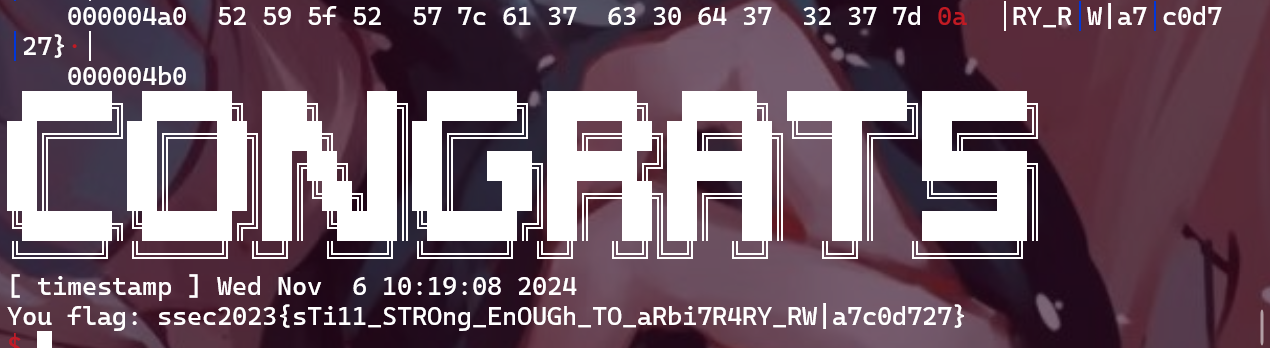 flag: ssec2023{sTi11_STROng_EnOUGh_TO_aRbi7R4RY_RW|a7c0d727}