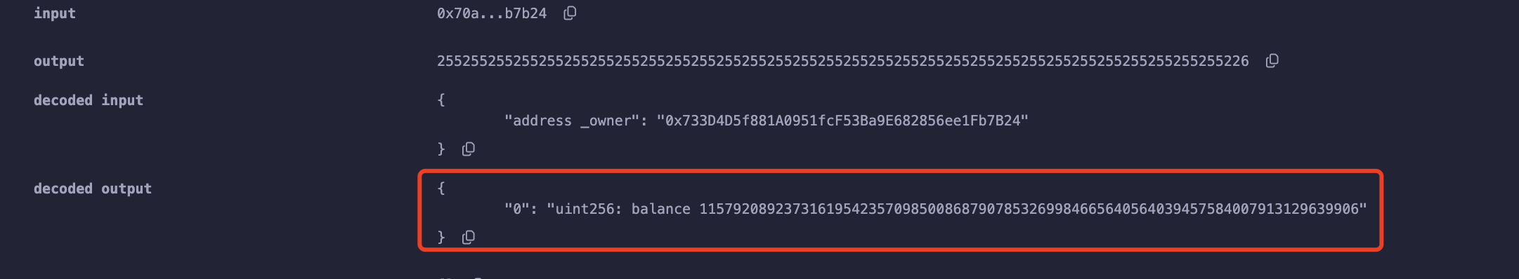 远程测试,执行完init->transfer后调用balanceof查看账户,发现已经被溢出为了一个很大的数。